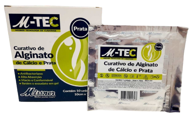 Curativo de alginato de cálcio e prata 10 cm X 10 cm MISSNER